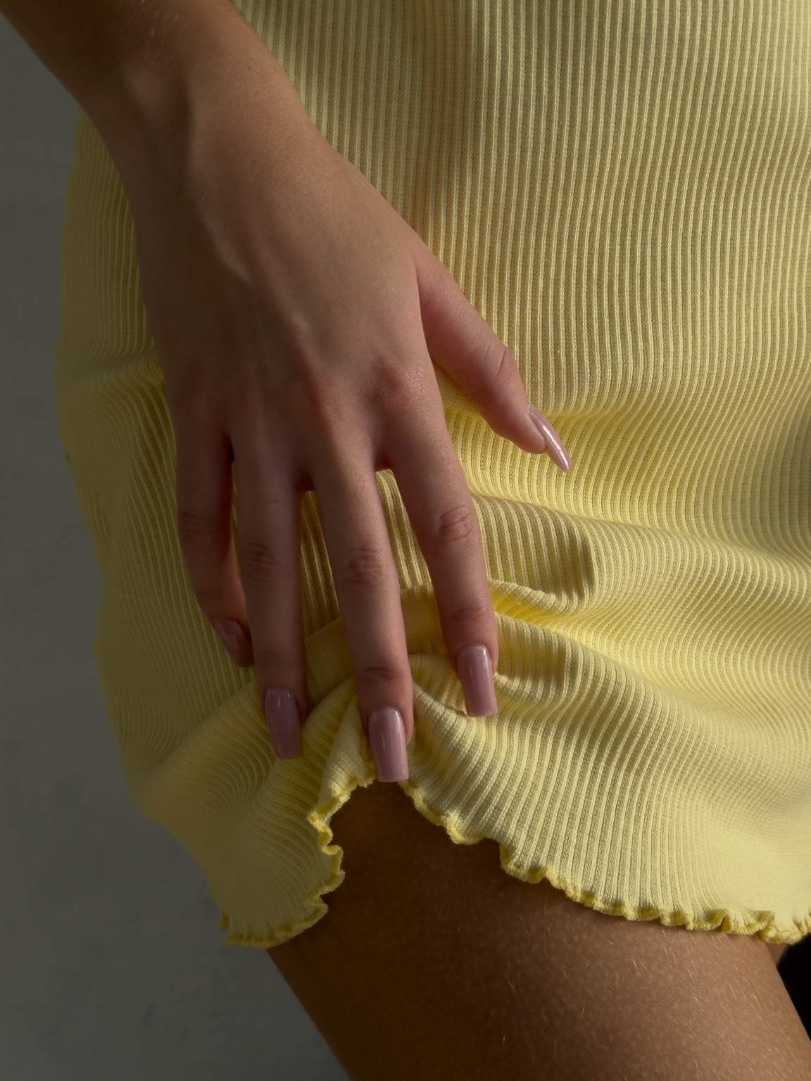 Soft and delicate Butter dress designed to perfectly fit and flatter your silhouette. Made from a comfortable, body-hugging fabric with adjustable straps for the perfect fit. Finished with a subtle wavy lettuce-edge hem that adds a touch of femininity and lightness.